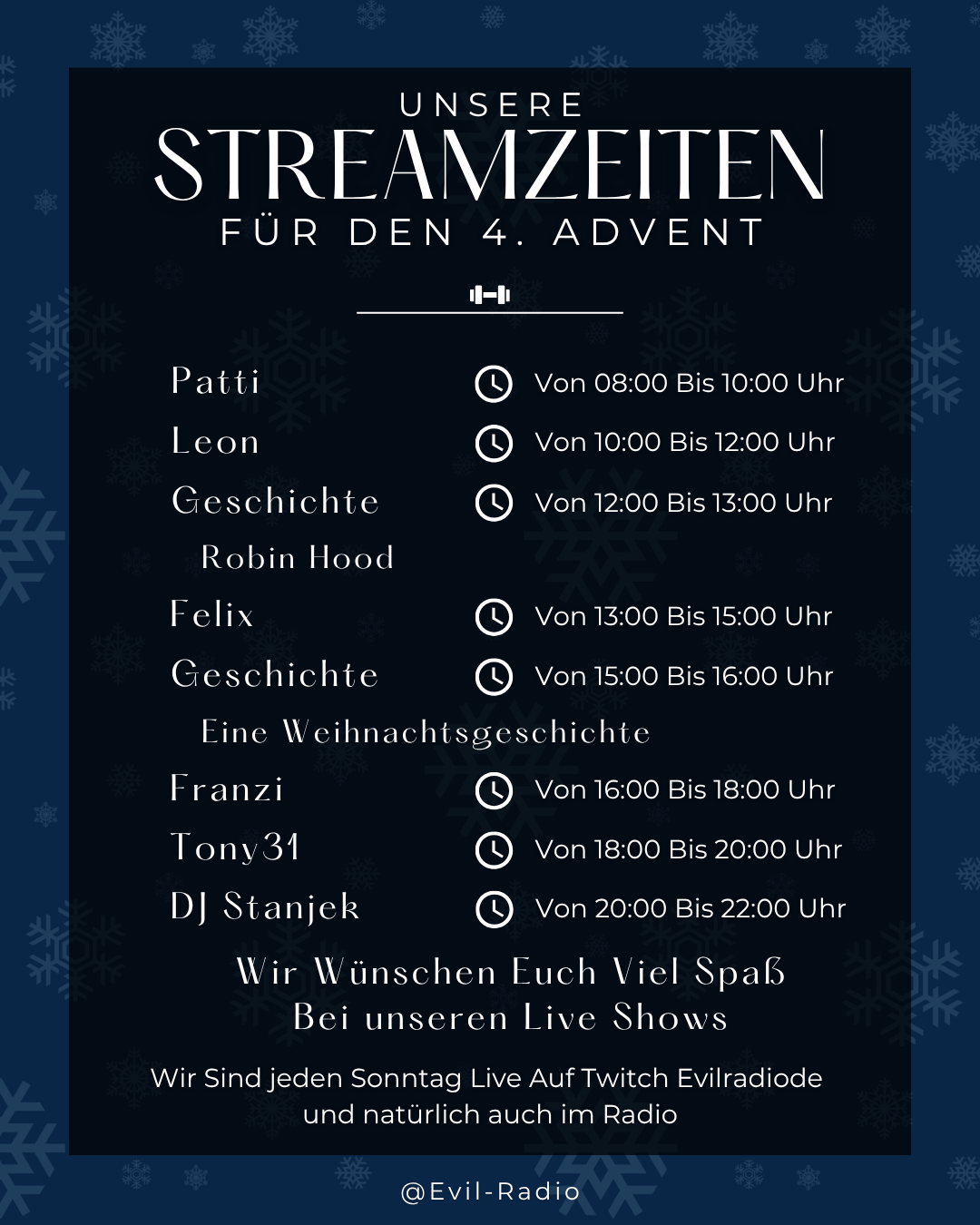 Guten Abend und herzliche Grüße an alle unsere treuen Hörer! Es ist die Zeit des Jahres, in der die Welt von festlicher Magie erfüllt ist, wenn sich Herzen erwärmen und ein Hauch von Schnee die Landschaft verzaubert. In dieser besonderen Saison wollen wir euch die Wärme und Freude von Weihnachten näherbringen.